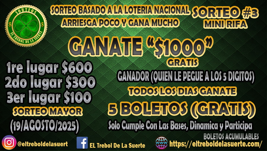 El ganador de El Trebol De La Suerte será el participante cuyo número de boleto coincida con las últimas cifras
